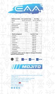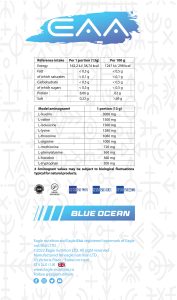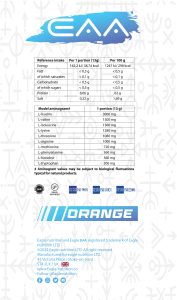 Every delicious serving of EAGLE EAA contains Zero Sugar, Low Calories, and Zero Carbs to improve performance and hydrate your body. the most advanced and developed amino blend with 11g of aminos per serving, 9g of which are (EAA) including 6g of (BCAAs) at a 2:1:1 ratio (3000mg L-Leucine, 1500mg L-Isoleucine, 1500 mg L-Valine) with an additional 1000mg of L-Arginine.
