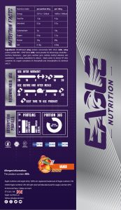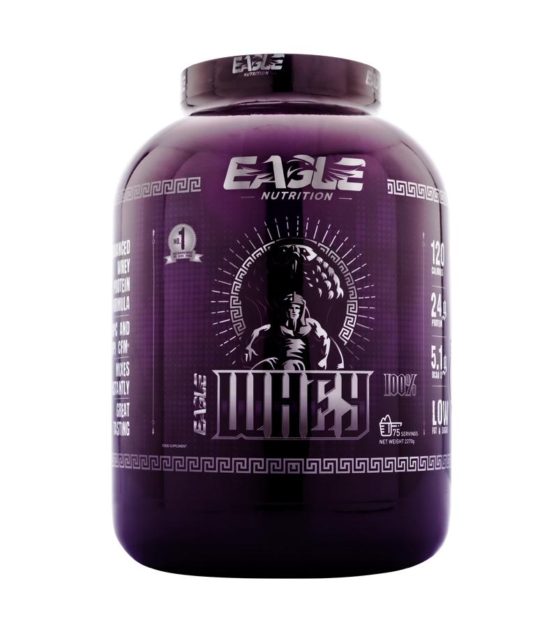EAGLE WHEY 100% is a scientific combination of CFM isolate and whey protein concentrate that provides 24 g of protein with a dual absorption profile to feed your muscles for two hours after taking one protion. because we use next-level technology, not only by name. We created one of the lowest fat and sugar proteins ever with 120 kcal, 1.3 g of fat, and 0.6 g of sugar with 4 g of carbohydrate from waxy maize to give you super-fast absorption from the first minute you take it to two hours. EAGLE WHEY 100% designed through research, development, and innovation. Eagle Nutrition understands the importance of taste, so they go to great lengths to ensure that you get the best of the most delicious protein you’ve ever had. Enter the world of the eagles by selecting one of our eight delectable flavors.